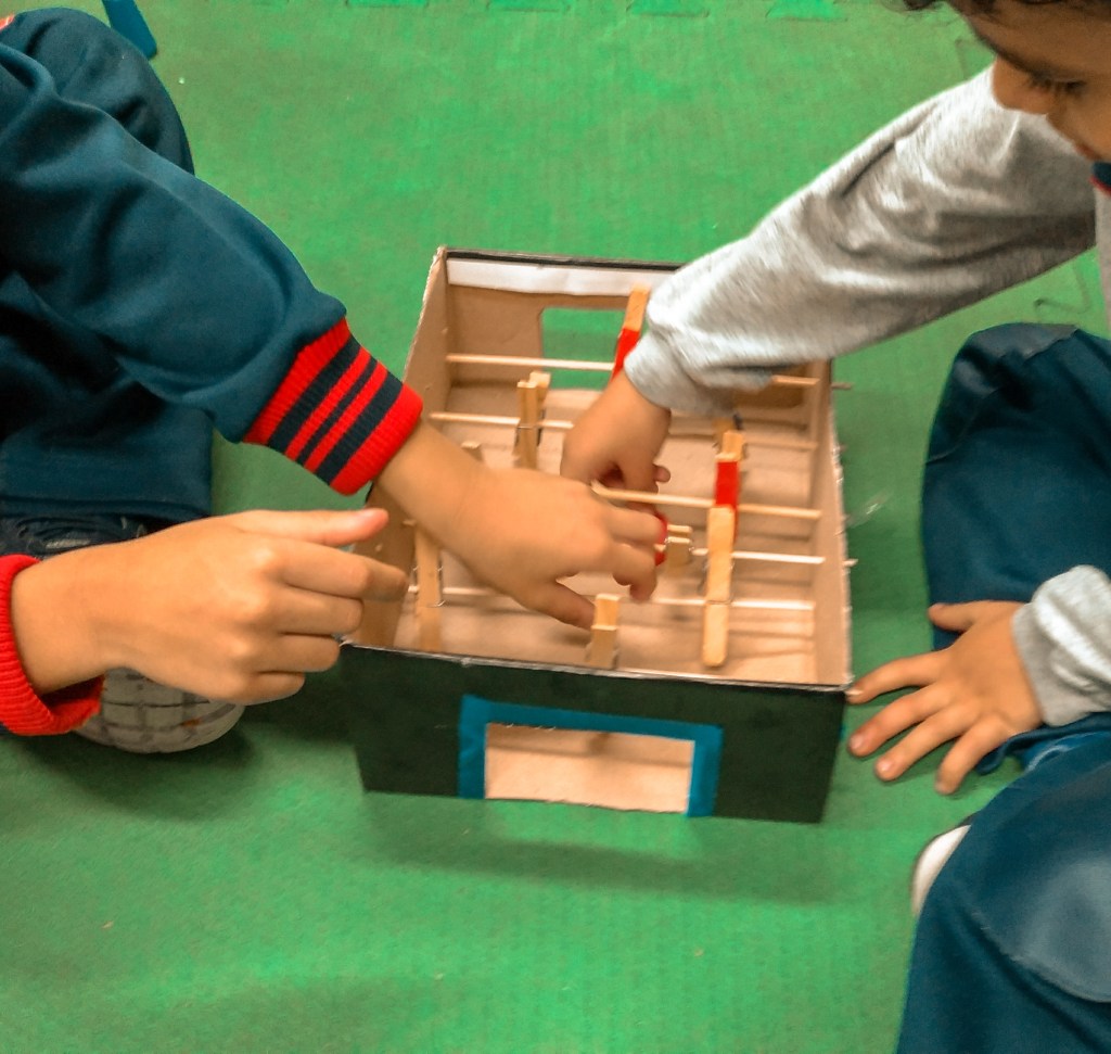 Em uma escola no Município de Petrópolis tivemos a oportunidade de dar a crianças do 4° período da educação infantil autonomia no brincar. Primeiramente fizemos levantamentos de quais jogos gostariam de ter na sua sala de aula, após esse levantamento, eles puderam participar da elaboração desses jogos e puderam por fim brincar do que gostariam, tendo autonomia nesse momento que é só deles.