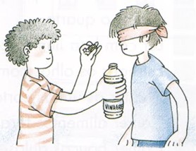 Em seguida o olfato: Nessa etapa ainda se utilizará a venda nos olhos, fazendo o mesmo procedimento, com a diferença de que as crianças apenas sintam o cheiro e tentem adivinhar o que é, tentando descrever o cheiro que está sentindo.