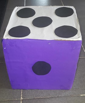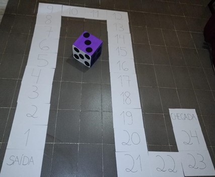 · Através do maior números lançados no dado vai ser decidido quem vai iniciar a partida (por ser a distância a professora vai arremessar o dado gigante).