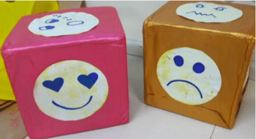 - Iniciar jogo. A professora deve jogar o dado e os alunos prestarem atenção em qual carinha caiu